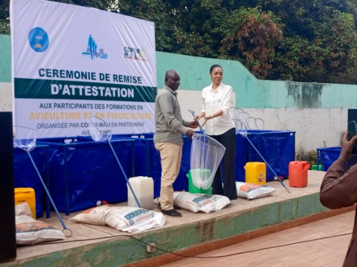 Au-delà de la remise des attestations, « cette formation se veut un véritable levier de transformation économique et sociale », a indiqué la Présidente de la COFOR Mali. A en croire Zeinab Evelyne Jacques, en misant sur l’aviculture et la pisciculture, des secteurs porteurs et accessibles, la COFOR Mali et l’ANPE ambitionnent de renforcer l’autonomie des jeunes et de contribuer à l’amélioration des conditions de vie des communautés. En plus de la formation, plusieurs jeunes ont également bénéficié de kits d’installation en pisciculture, « un vrai coup d’accélérateur vers l’autonomie et l’emploi », a laissé entendre le Directeur adjoint de l’ANPE